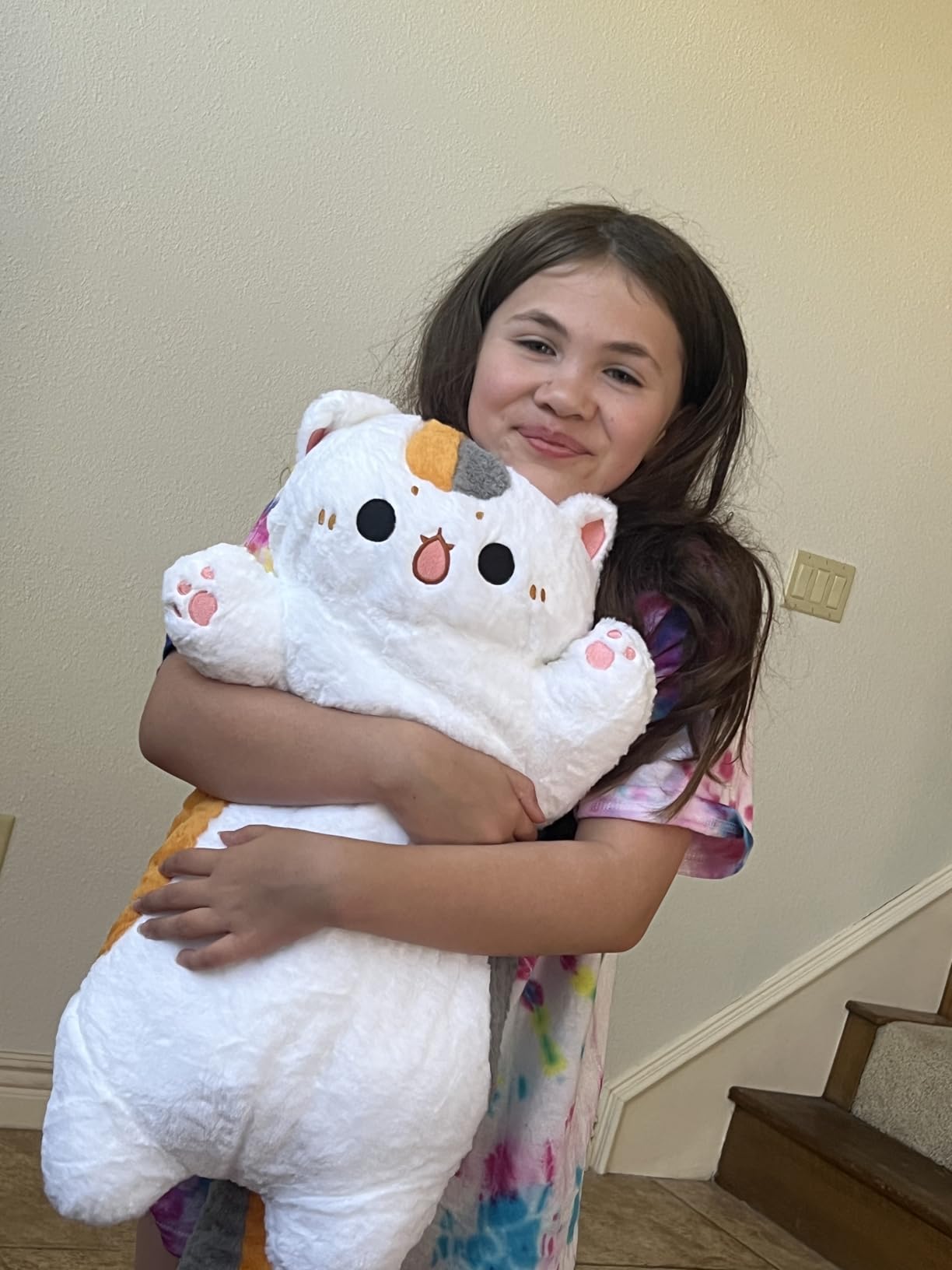 This is not just cute—it’s ridiculously soft! I love unzipping the fish to find the little kitty inside. It’s like a surprise hug every time. I keep it next to me 24/7 💖🐟🐱 -